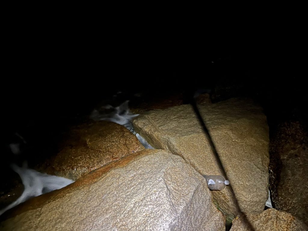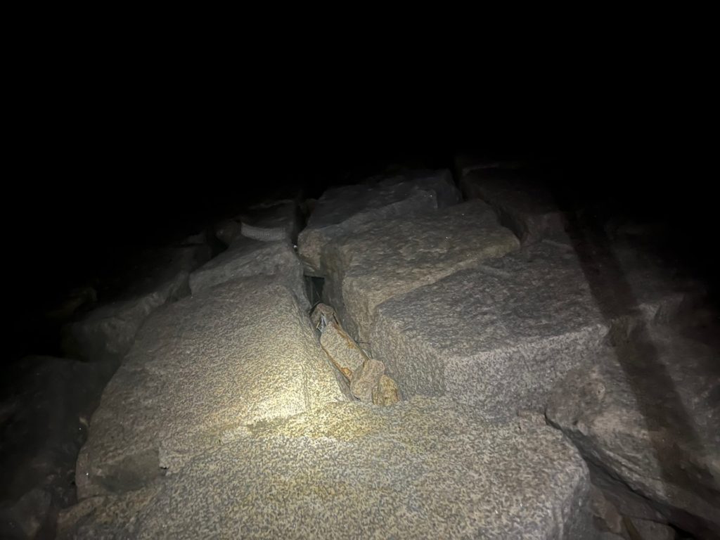 深夜になると石積みの波止には誰もいません。