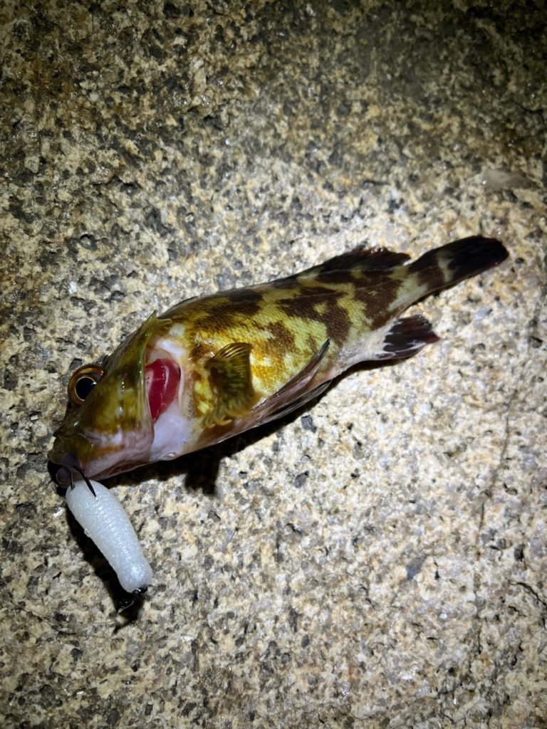 波止にはフグはいないようで、イモグラブ40は食いちぎられることなく、ガシラが釣れていきました。