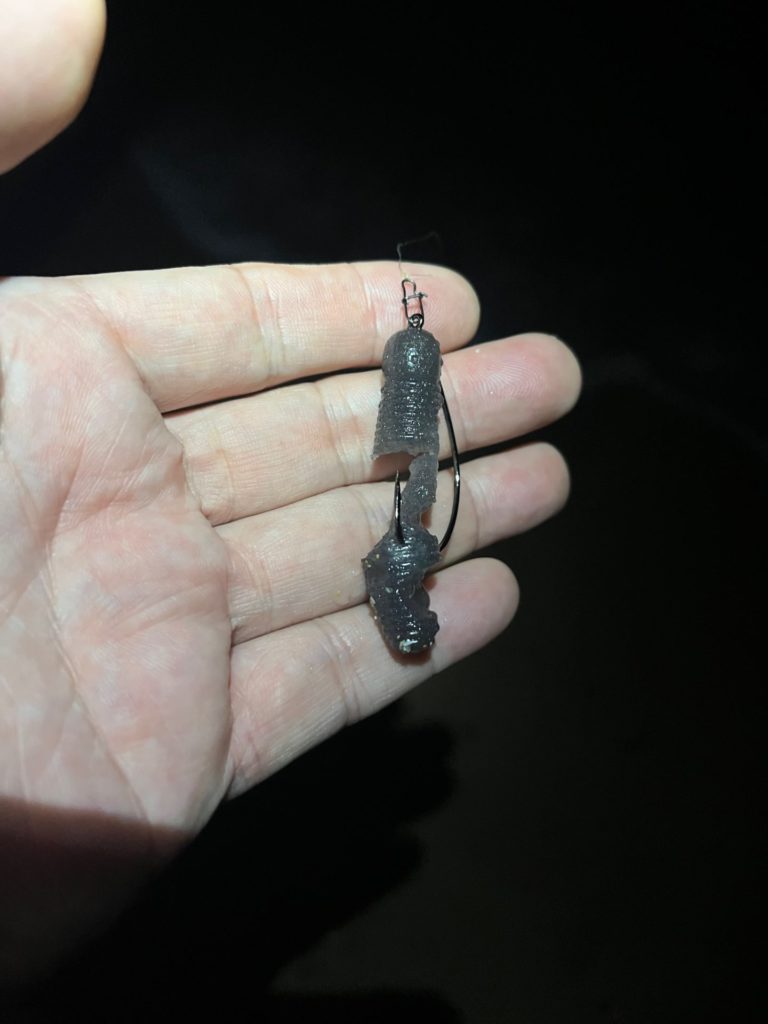 いつもは、4インチグラブのテールをちぎって逆に刺し