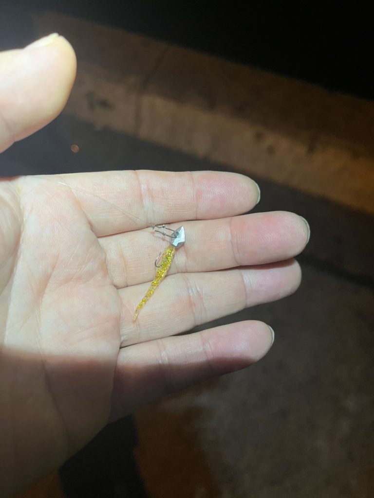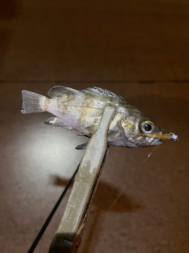 諦め寸前のとこで1匹釣れた。これは本当に嬉しかった。まだアジボウズなし。