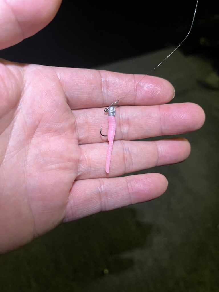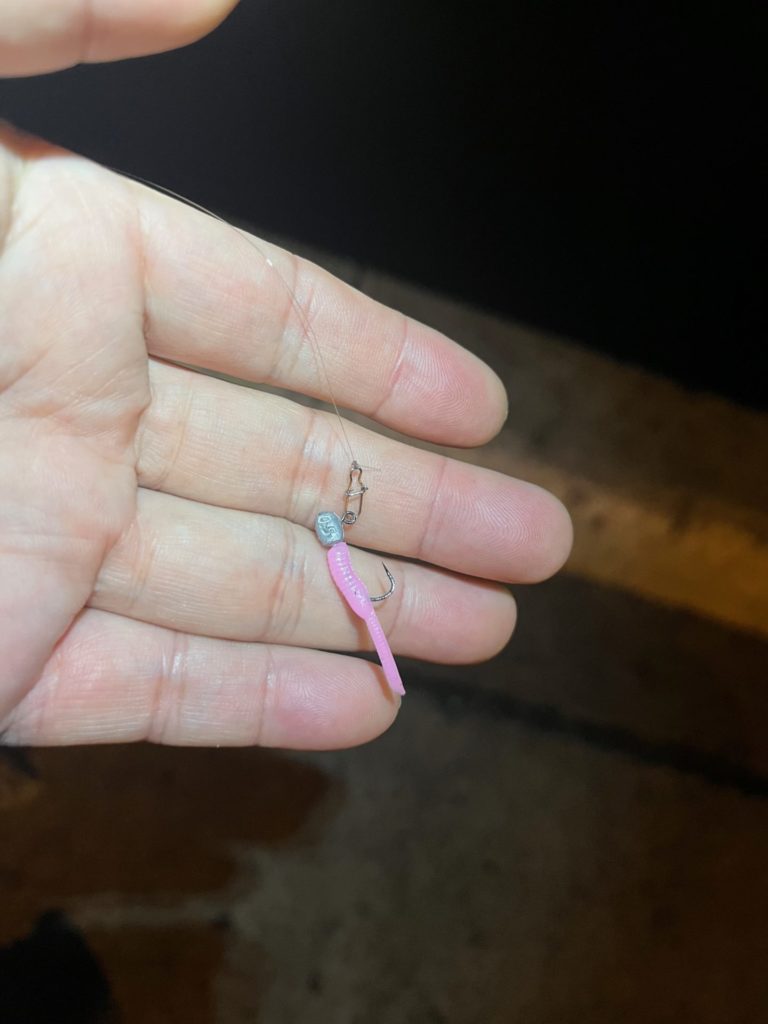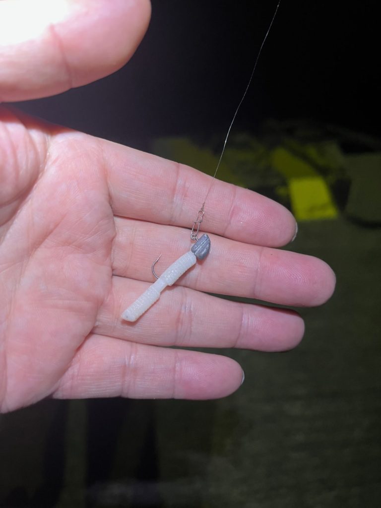 と、ワームを変えたり、ジグヘッドの重さ、フックサイズを変えていきました。