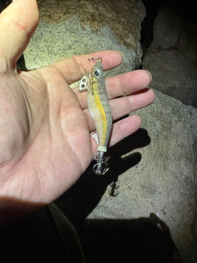 今回エギンガーがほぼ居ない、人気のないところでやって、2匹釣りました。