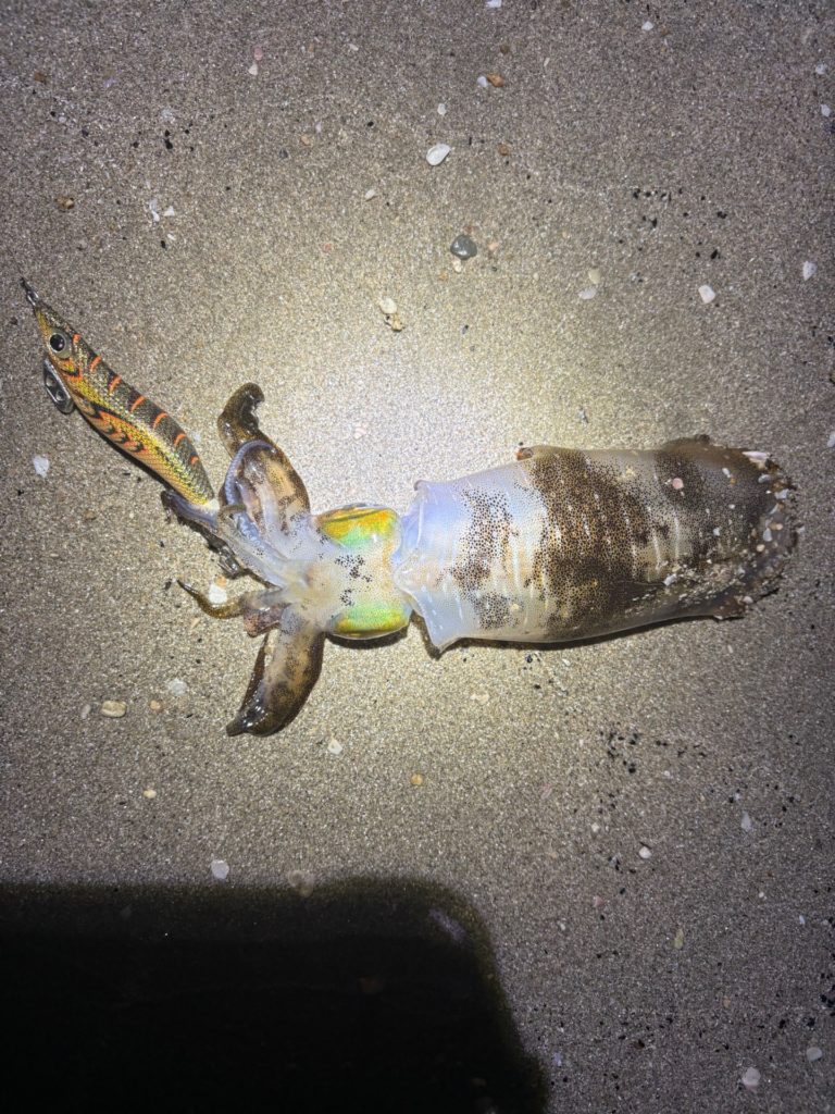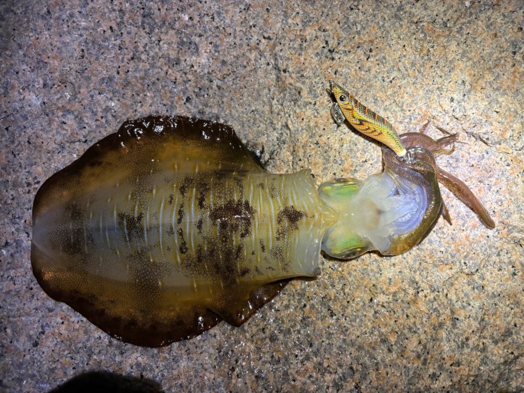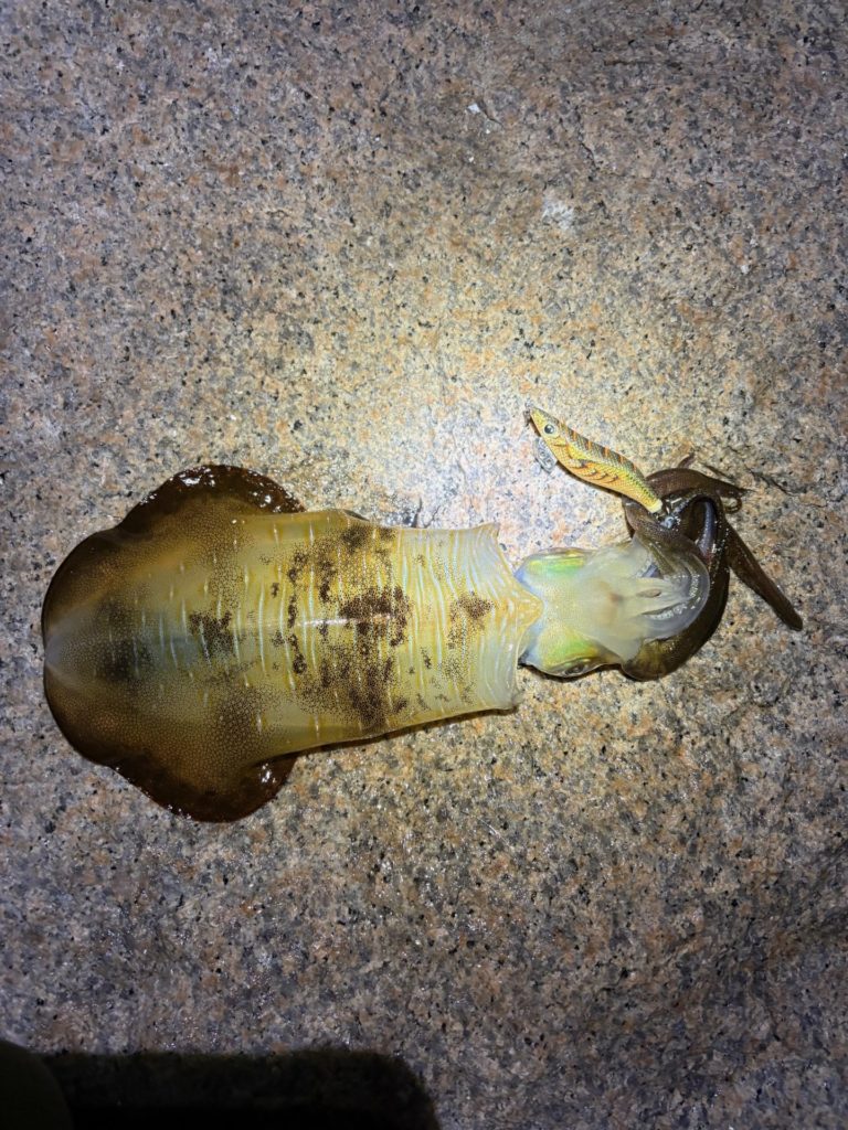あまりにも根掛かりが多いし、中小のアオリイカを2匹釣ってるので