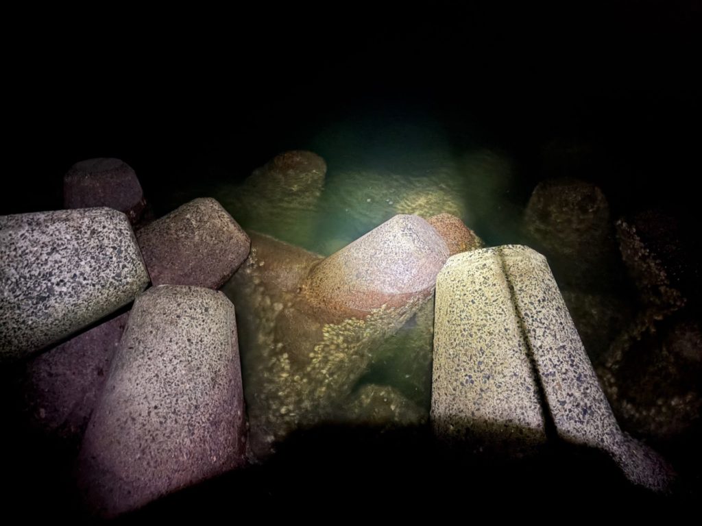 車で移動し、別の漁港にあるテトラ帯でライトエギングすることにしました。