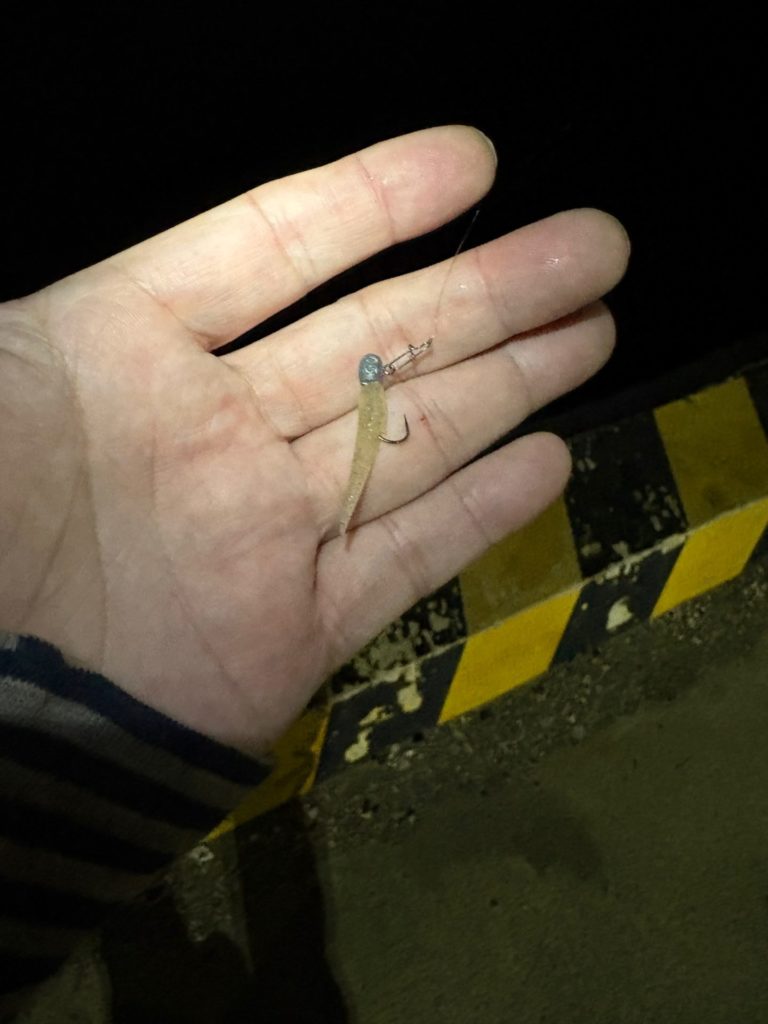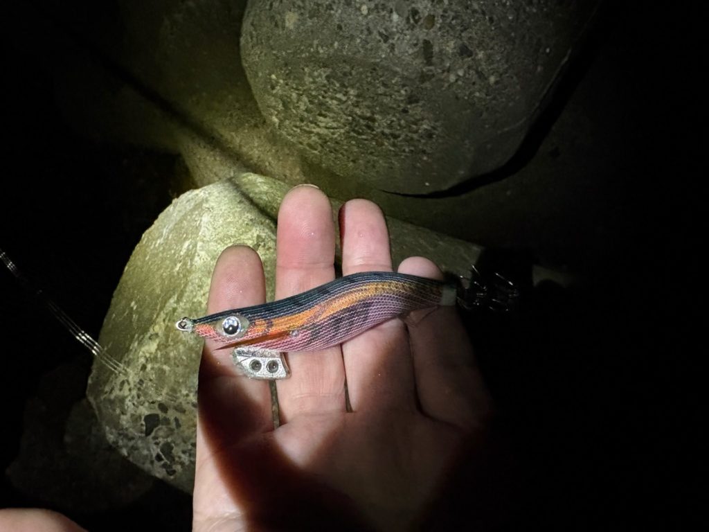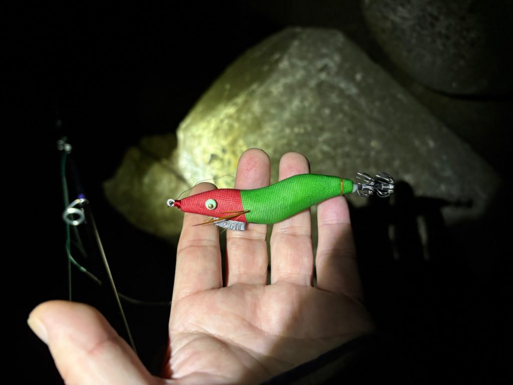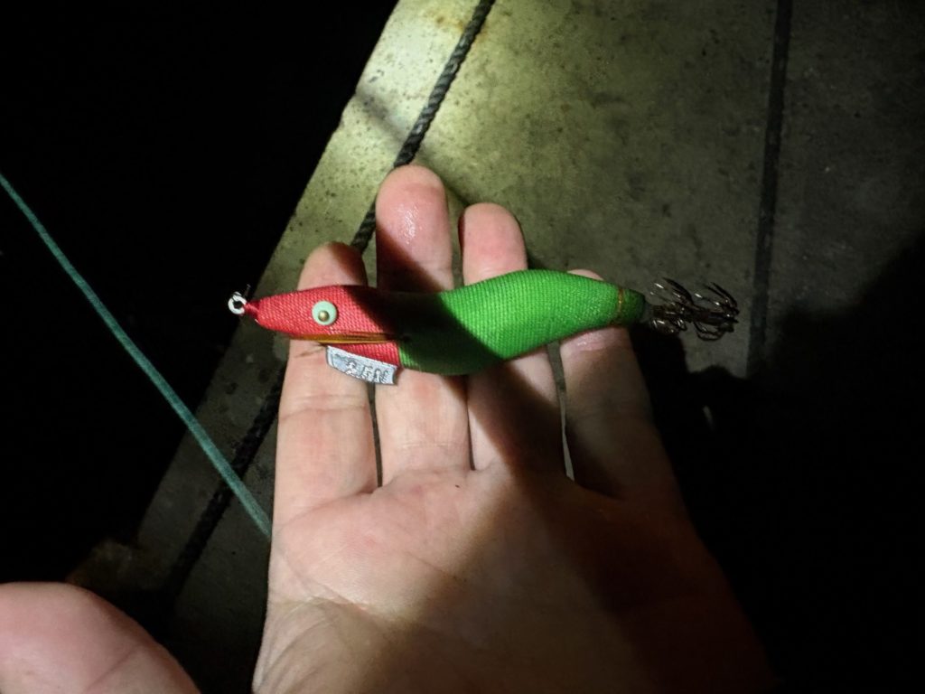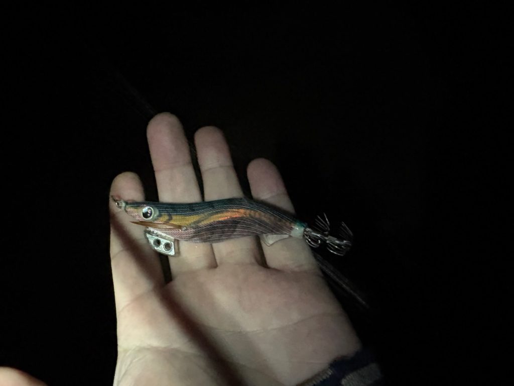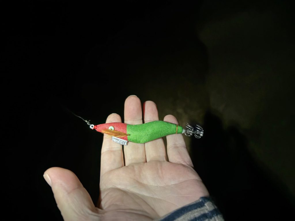 アジの反応はしばらく続きそうだし、1時間アジングを楽しんだから、イカが居ないかやってみることにしました。