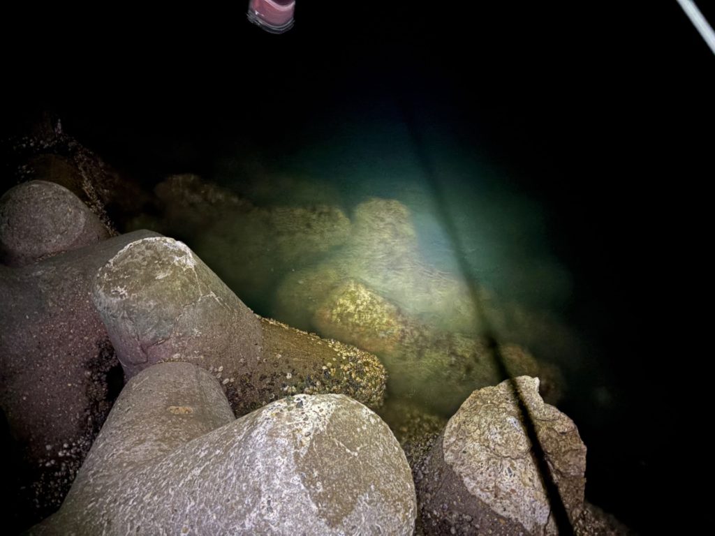 波止で反応がなかったのでテトラ帯に移動しました。