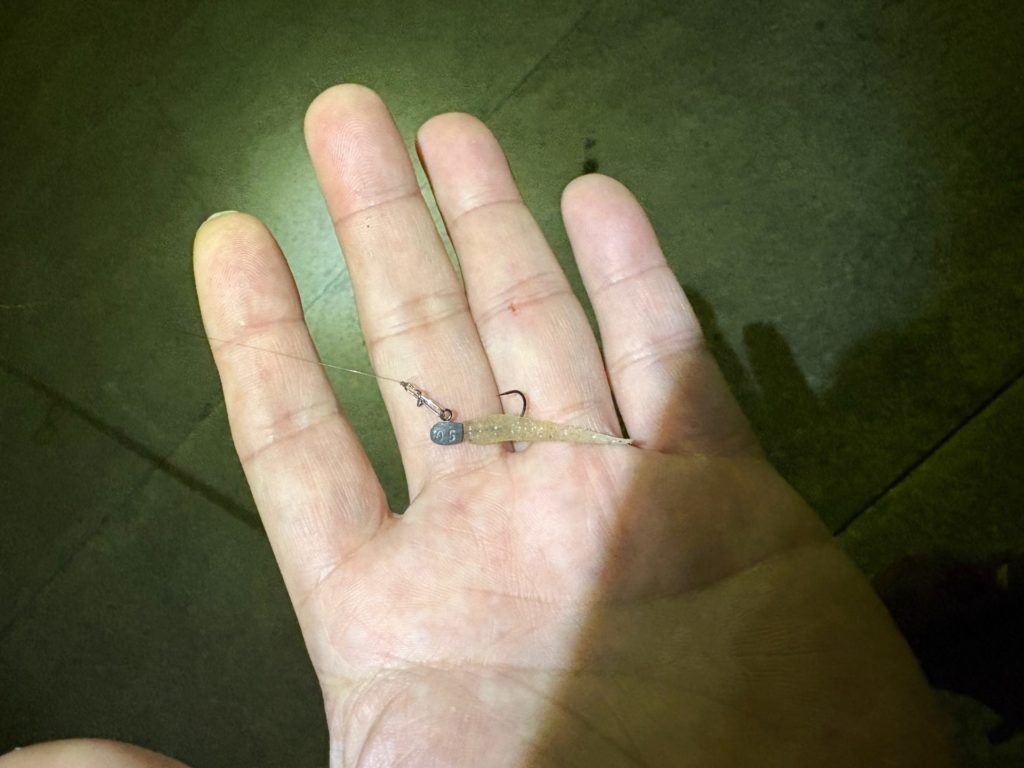 ワームを小さくし、ジグヘッドは重くしてみましたが、これもアタリはたまにありましたが乗らないアタリでした。