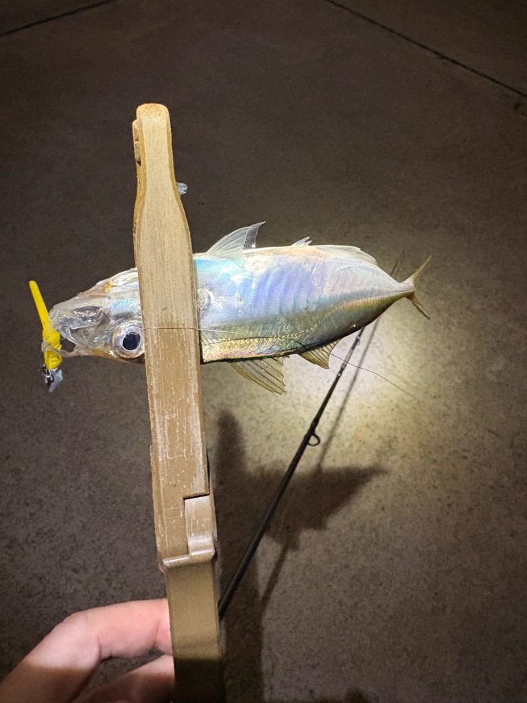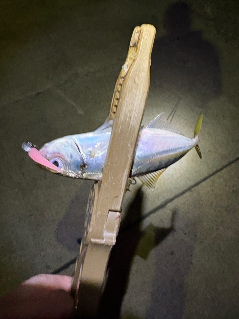 サイズが15cmを超えてきているアジなので、引きも楽しめ面白いです。