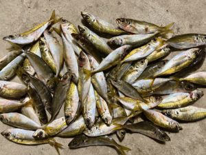 イカもアジもボウズを喰らった次の釣行は、アジ狙いに絞って数釣りを楽しめました。