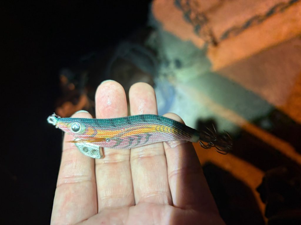 餌木猿ツツイカ 2.5号のタダ巻きで、何かがあたってきたのを感じましたが、それがイカパンチなのか魚なのかわかりません。