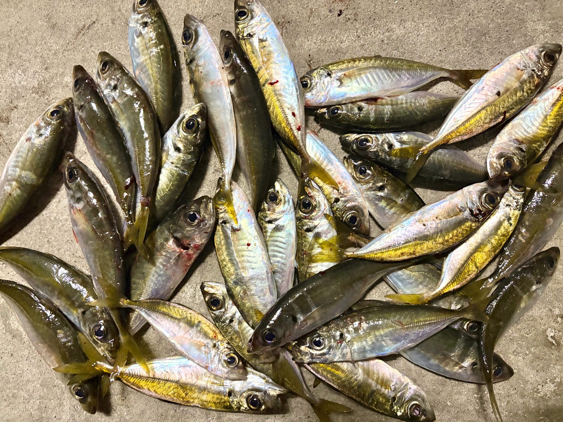 アジのサイズは、神戸西部の漁港より大きく、15cm以上のアジです。