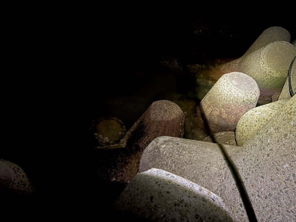 プラグに戻し、表層を探っていき、テトラの立ち位置も変えてみましたが反応無し。