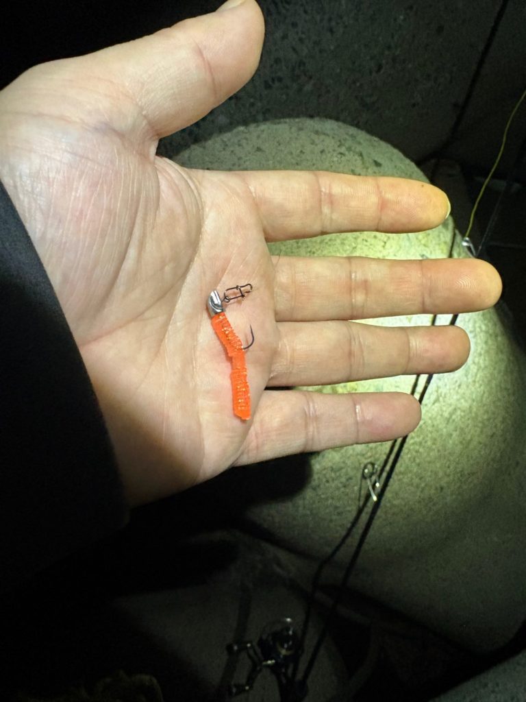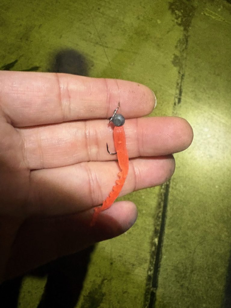 反応が良いときは、ジグヘッドの重さ、ワームの形状は、さほど関係ないようです。