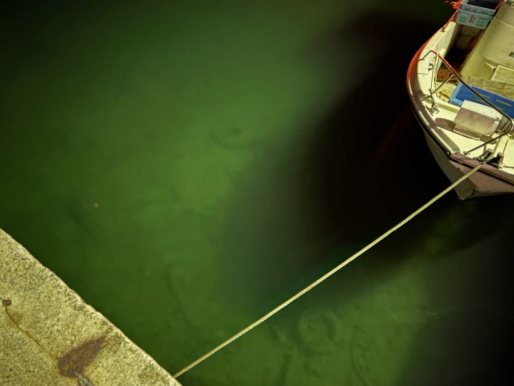 干潮潮止まりなので漁船の間に移動