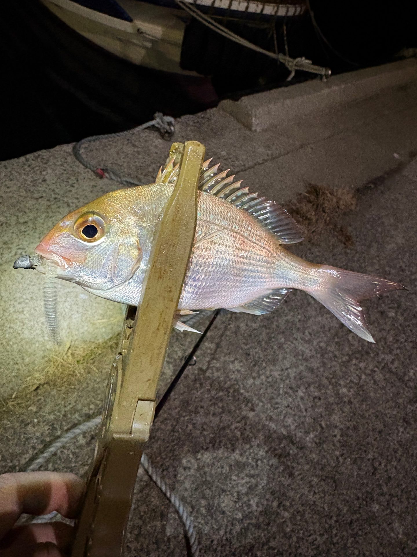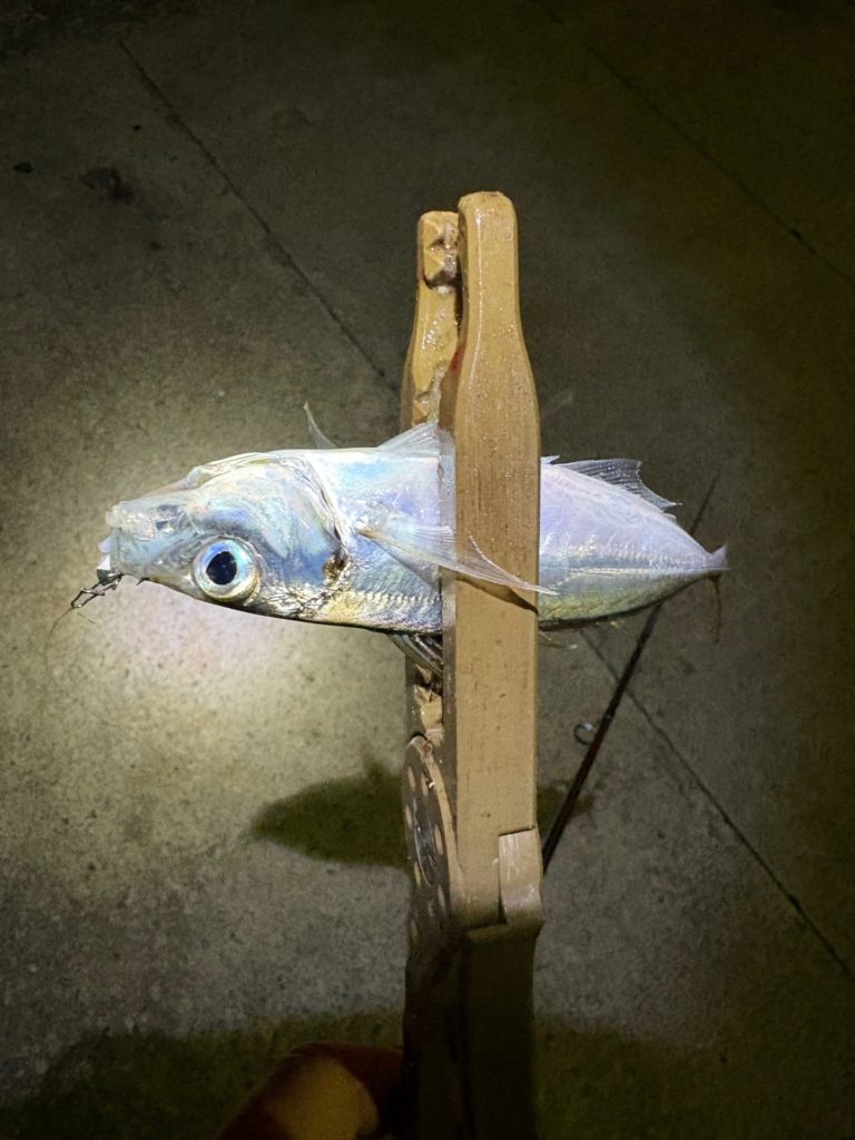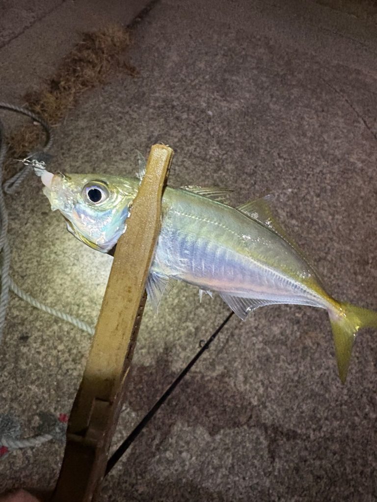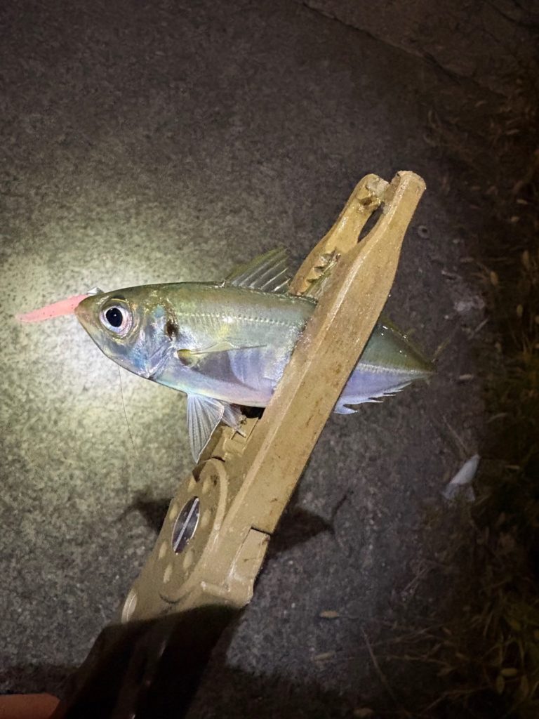 でもアタリが減ったから、立ち位置を変えていき2匹のアジを釣りました。