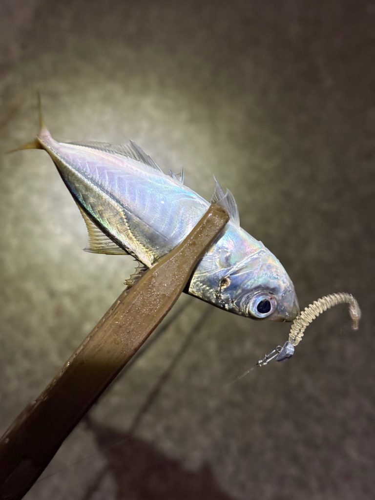 で、やっていくと表層に反応するアジがポツポツと釣れました。