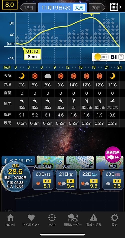 昨年の釣行を見てみると、この港の釣果は11月に入り悪くなったから1回しか来ていませんね。