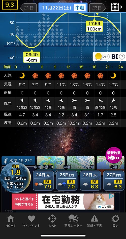 たまにアタリがあったり、見えアジが居たりしたんですが、フッキングできるアタリはありませんでした。