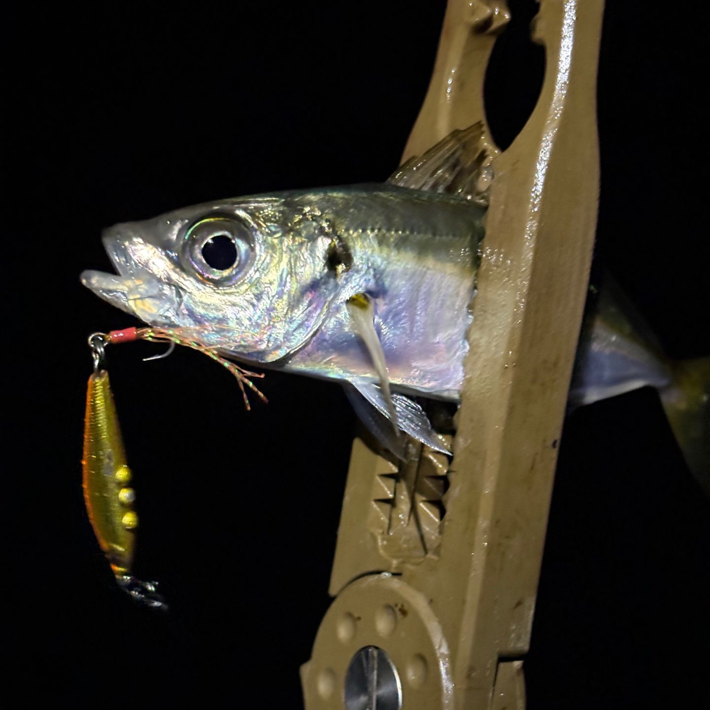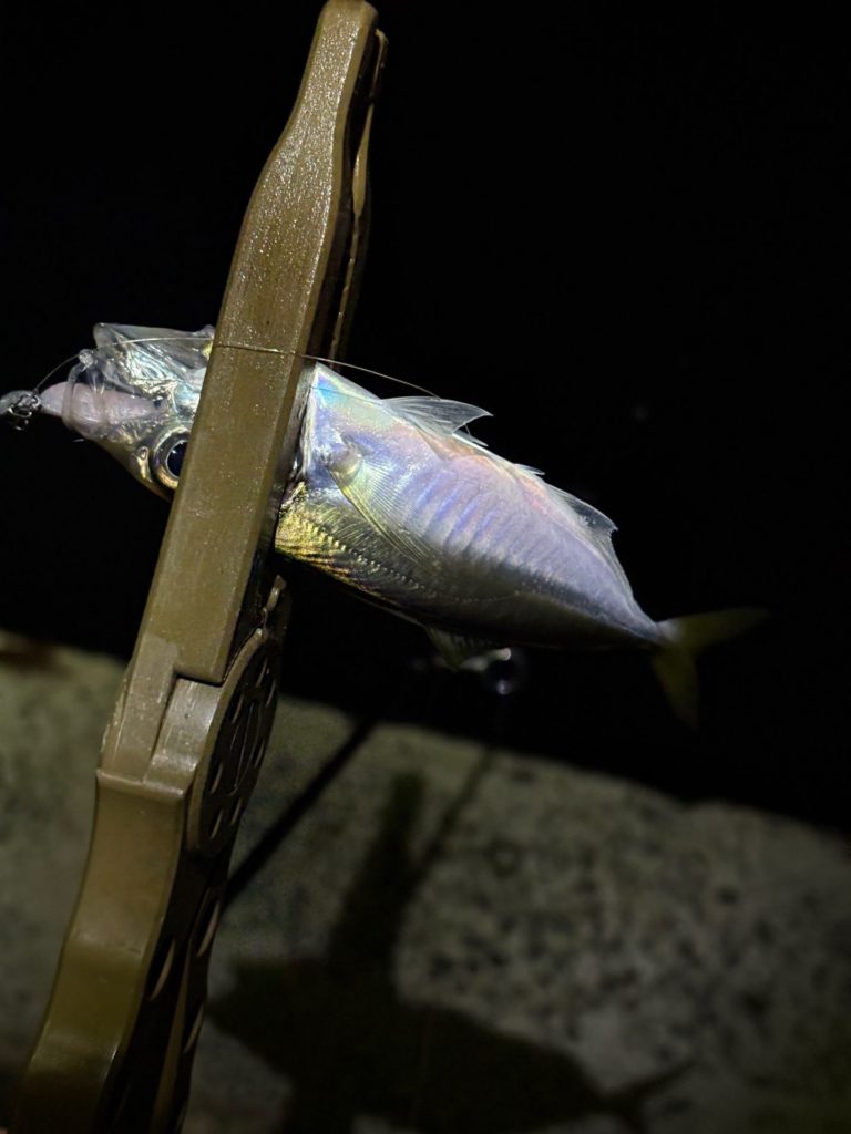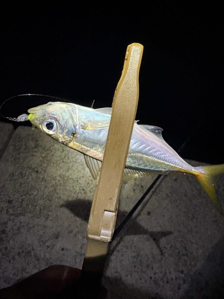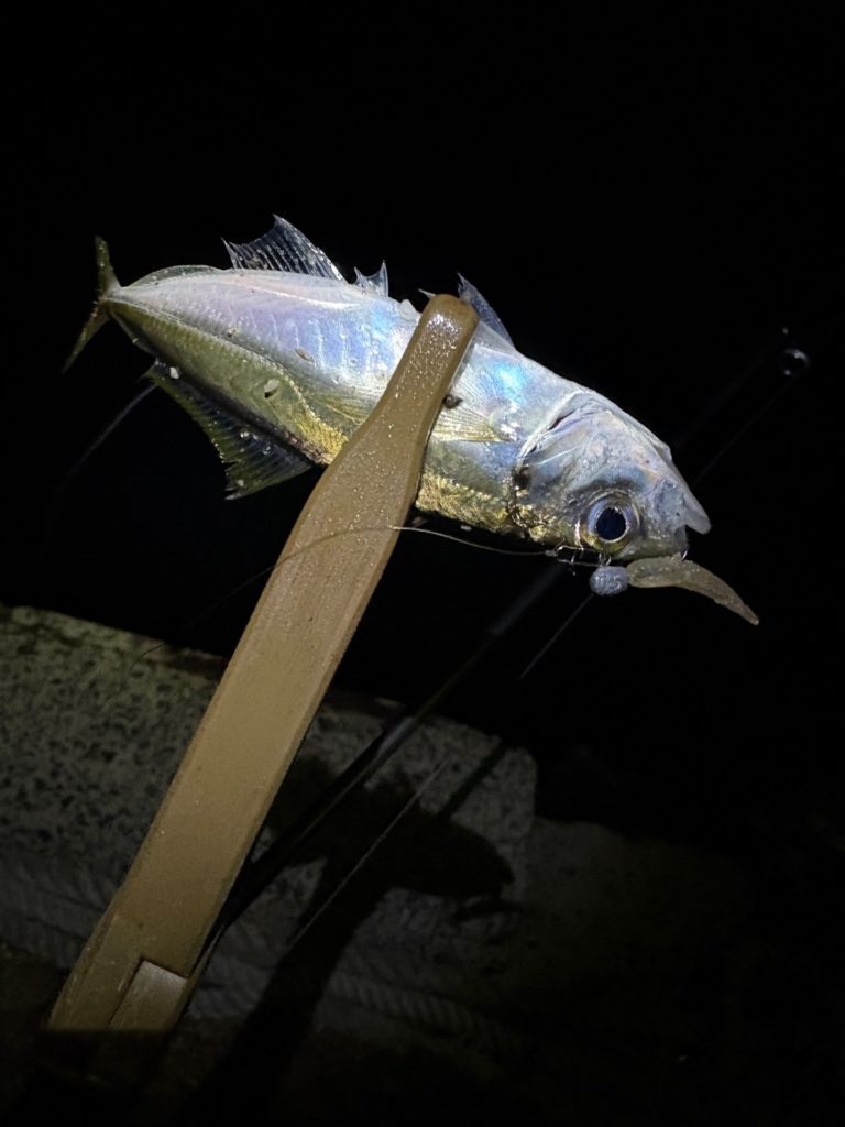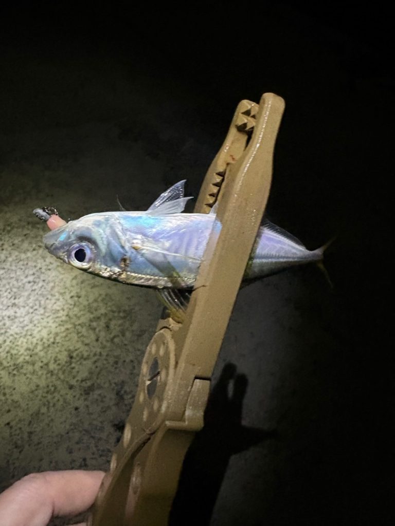 バラさないように寄せてきてアジが釣れました。