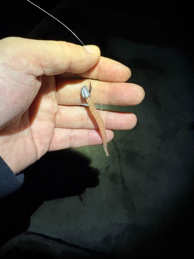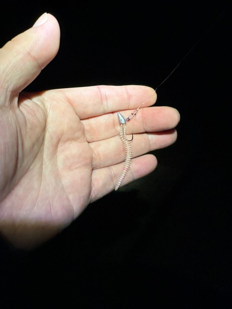 に変更し、ワームサイズを小さくし、ジグヘッドを軽くした豆アジ対応の組み合わせ。