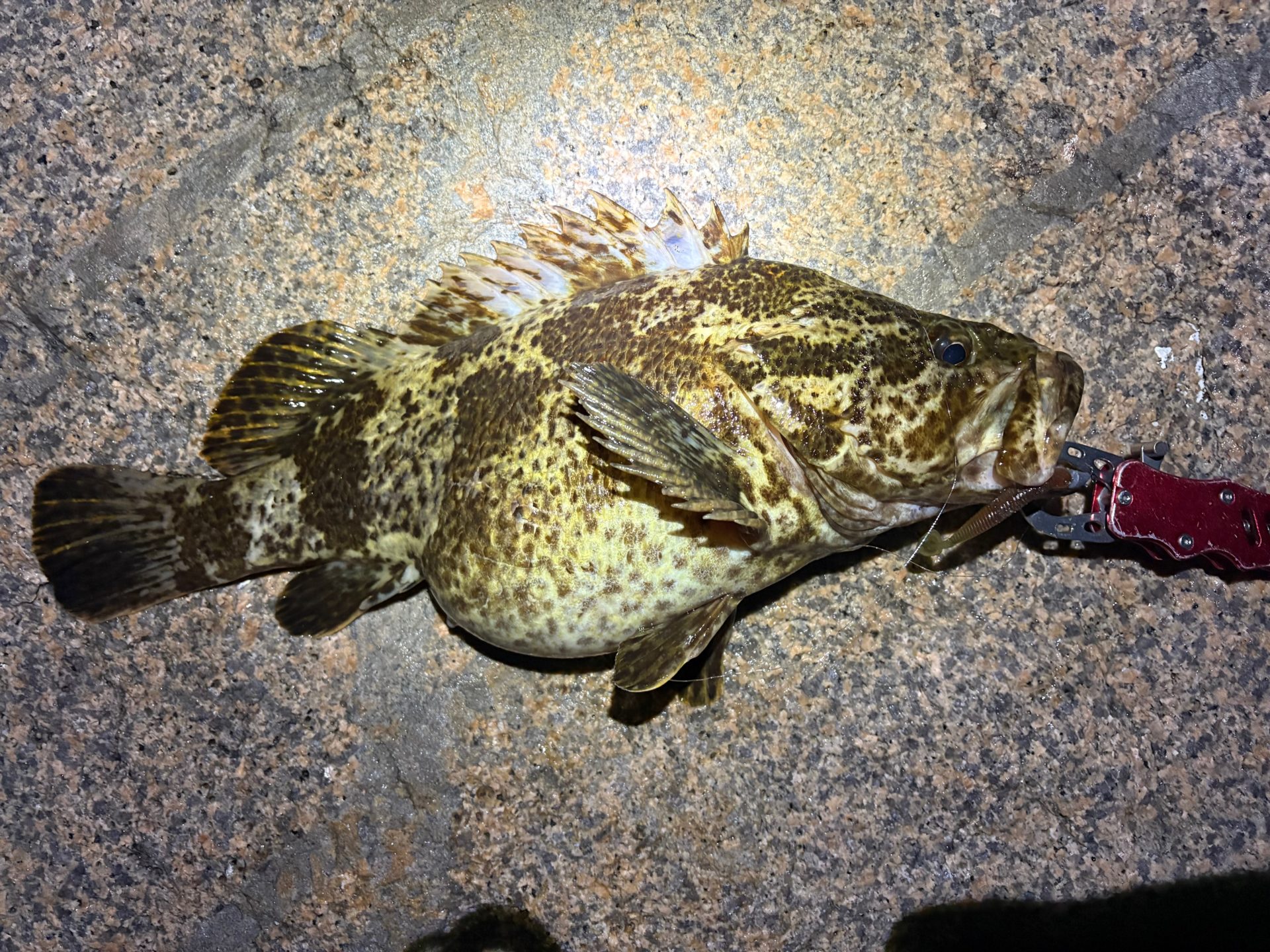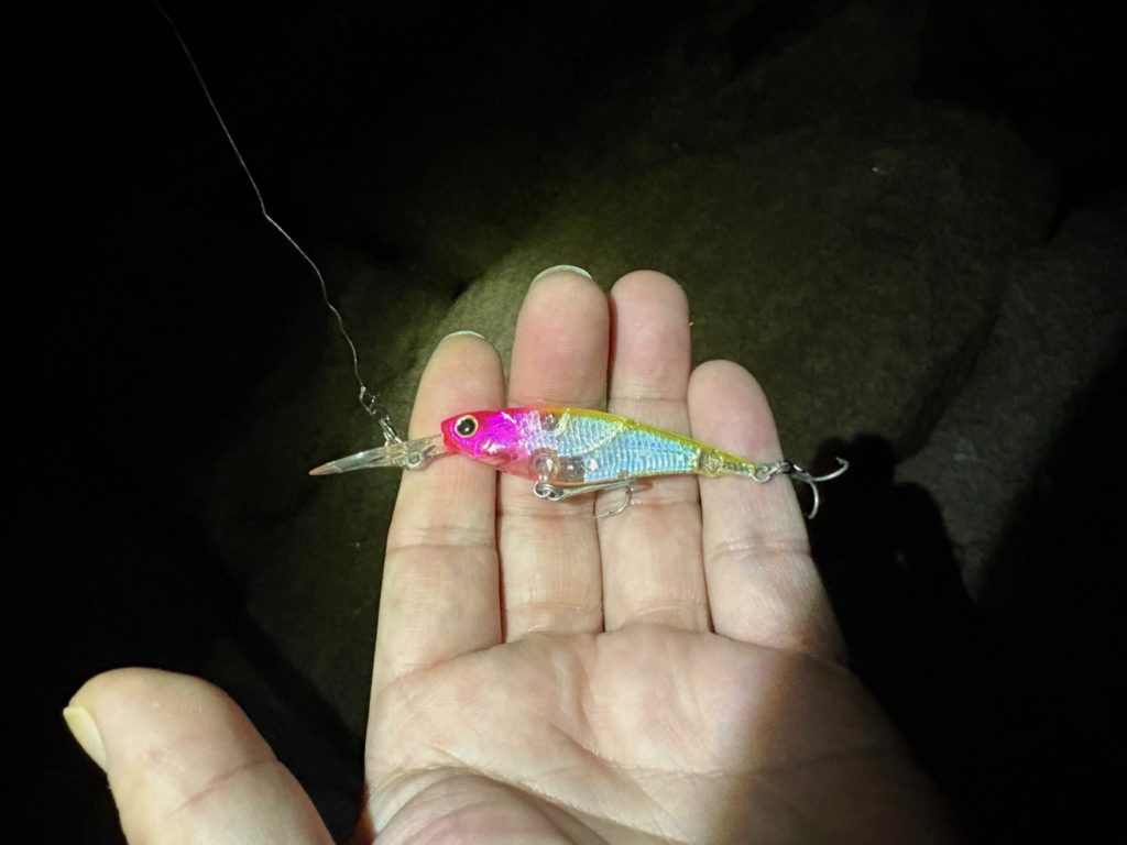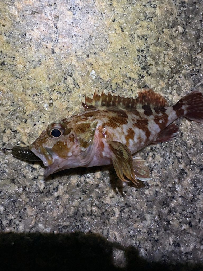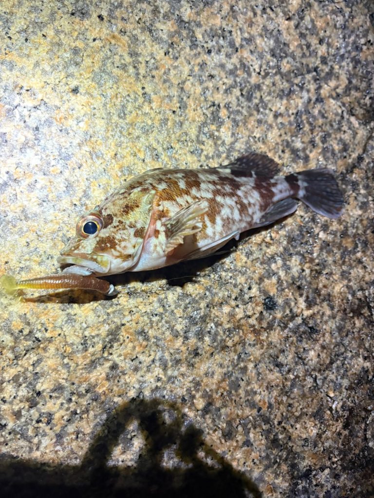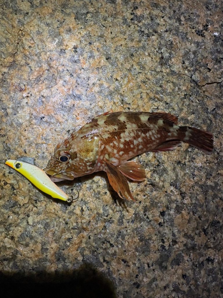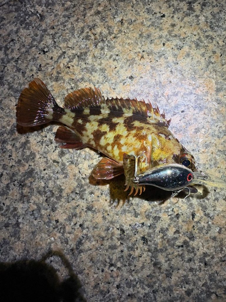 プラグでも釣ったし、ソルトクランクでも釣ってる。それに特大のタケノコメバルも釣った。