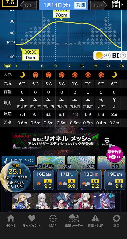 水位が低くても反応するメバルは居るのかもしれませんが、潮も止まっているので、プラグのせいではないと判断しました。