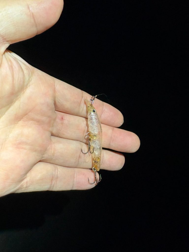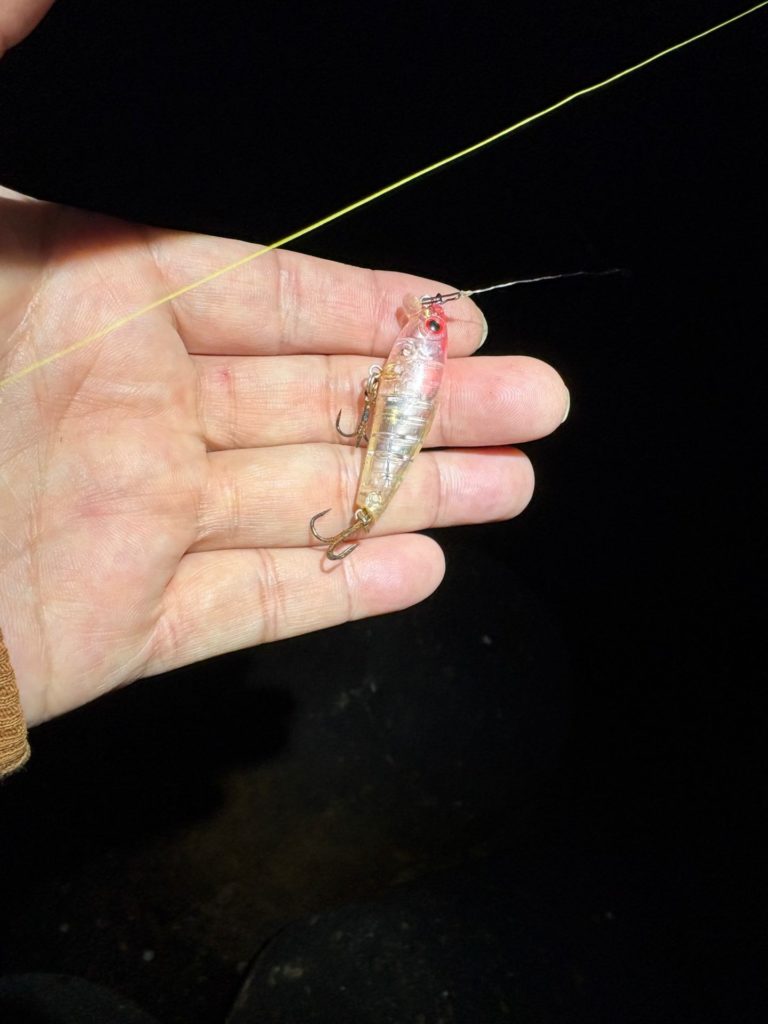 で、水面直下をI字系でデッドスローリトリーブ。